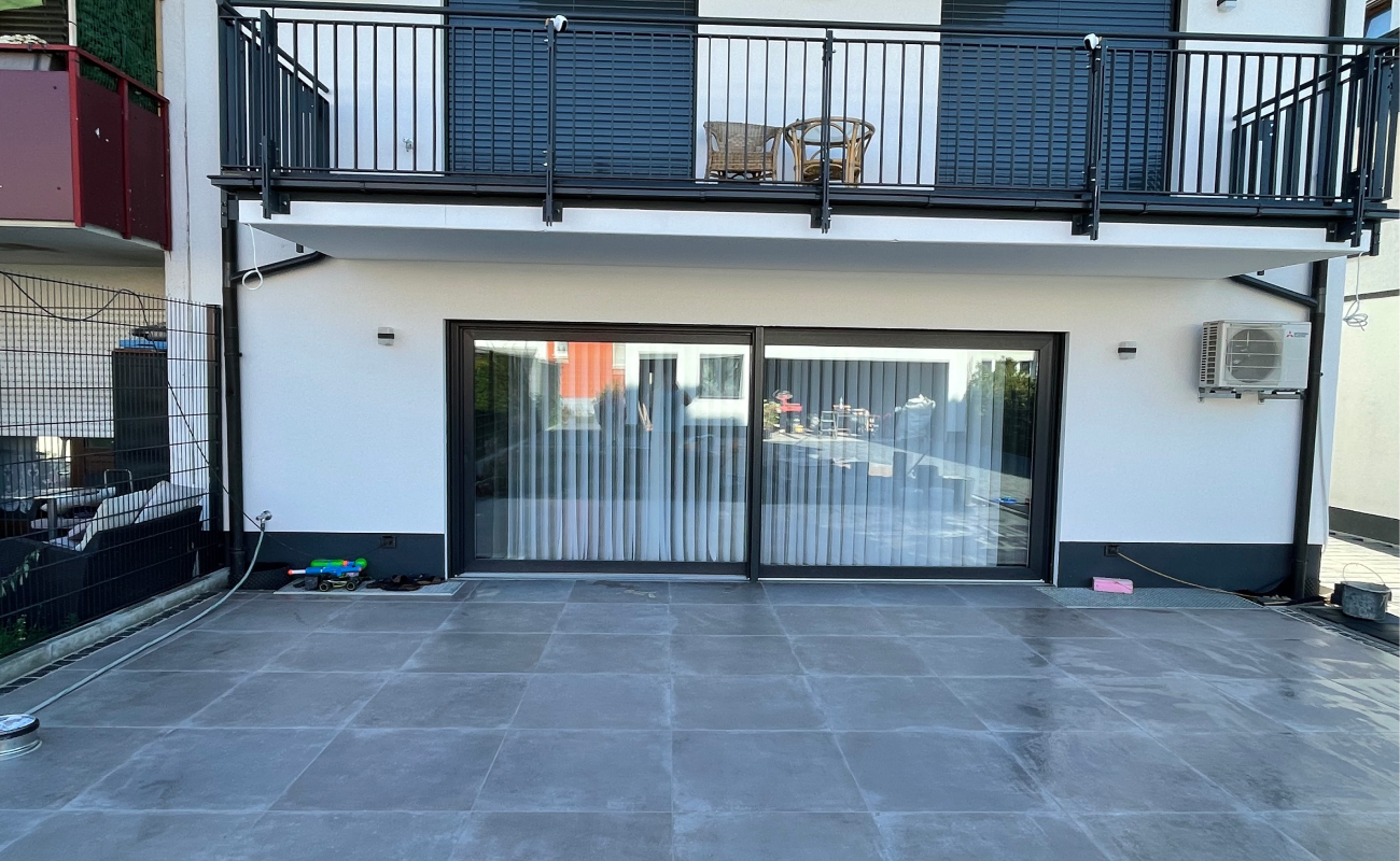 Für Terrassen und Außenbereiche empfehlen wir witterungsbeständige Natursteine oder spezielle Außenfliesen mit rutschhemmender Oberfläche. Diese Materialien sind robust und bieten hohe Sicherheit.